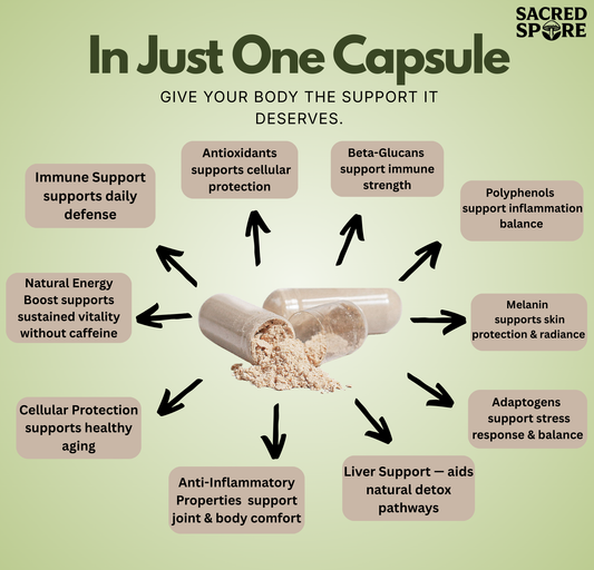 Whether you're fueling your day with functional mushrooms or unwinding with a restorative skincare ritual, Sacred Spore is here to support your journey to balance and renewal. We believe in clean, honest formulations that are as effective as they are gentle — because wellness should never be harsh.